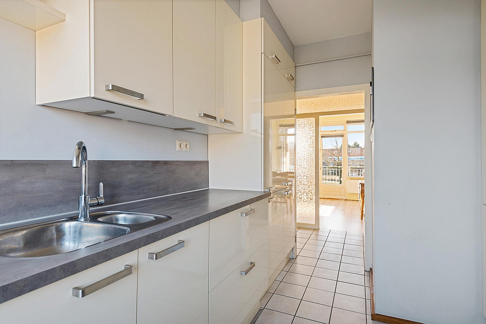 Entree, hal met garderobe. Toiletruimte met vrijdragend toilet. Lichte woonkamer (ca. 23 m²) met open haard en vrij uitzicht, toegang tot het zonnige balkon (ZW-ligging) met zonnescherm. Keuken (uit 2017) met een klein balkon en diverse inbouwapparatuur, waaronder een vaatwasser, inductiekookplaat, koelkast, vriezer, afzuigkap en oven. Drie ruime slaapkamers, waarvan één met een vaste kast. Extra bergkamer, geschikt voor opslag of hobbyruimte. Badkamer voorzien van een douchecabine en wastafel.