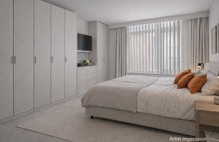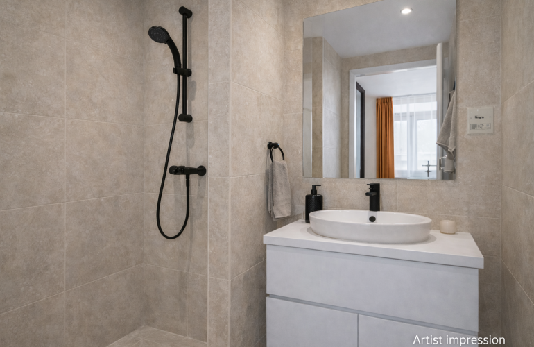 Het penthouse beschikt over drie volwaardige slaapkamers en in totaal drie badkamers. De master bedroom is voorzien van een eigen badkamer, de tweede badkamer en een separaat toilet zorgen voor extra comfort voor bewoners en gasten. De derde badkamer wordt momenteel gebruikt als bergruimte, maar kan eenvoudig weer in gebruik worden genomen als volwaardige badkamer.