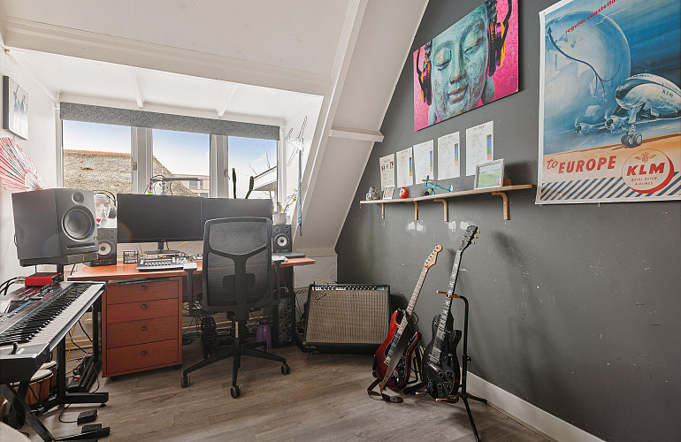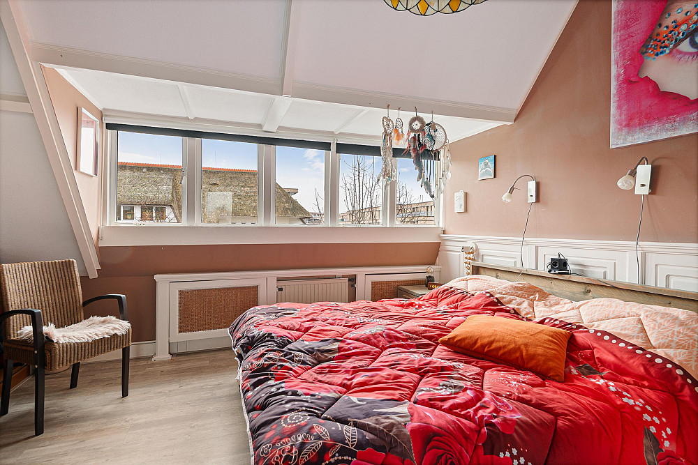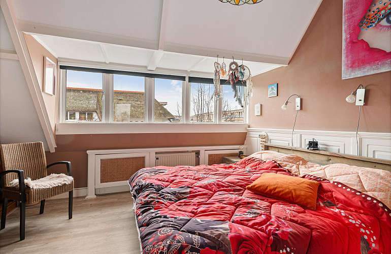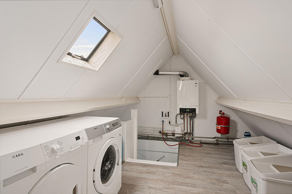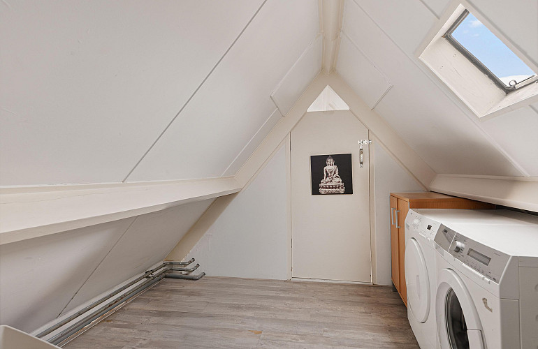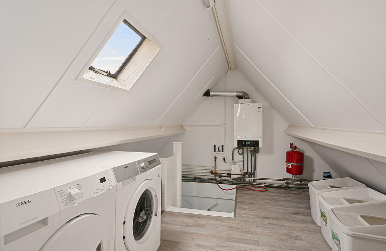 Via een vaste trap bereikbare zolder met opstelplaats voor de C.V.-ketel (Nefit HR, 2013) en aansluiting voor wasmachine. Aansluitend bevindt zich een zolderkamer met twee Velux dakramen, geschikt als werk-, hobby- of extra slaapkamer.