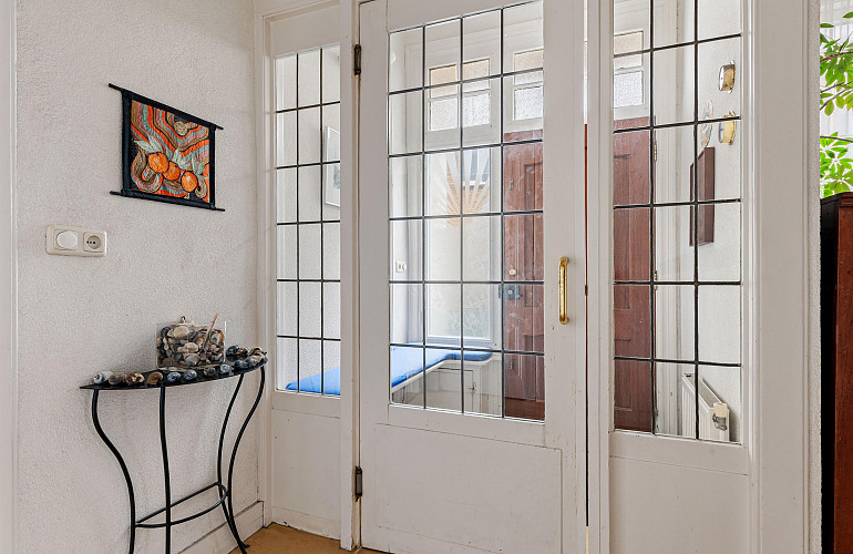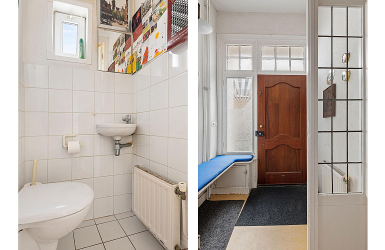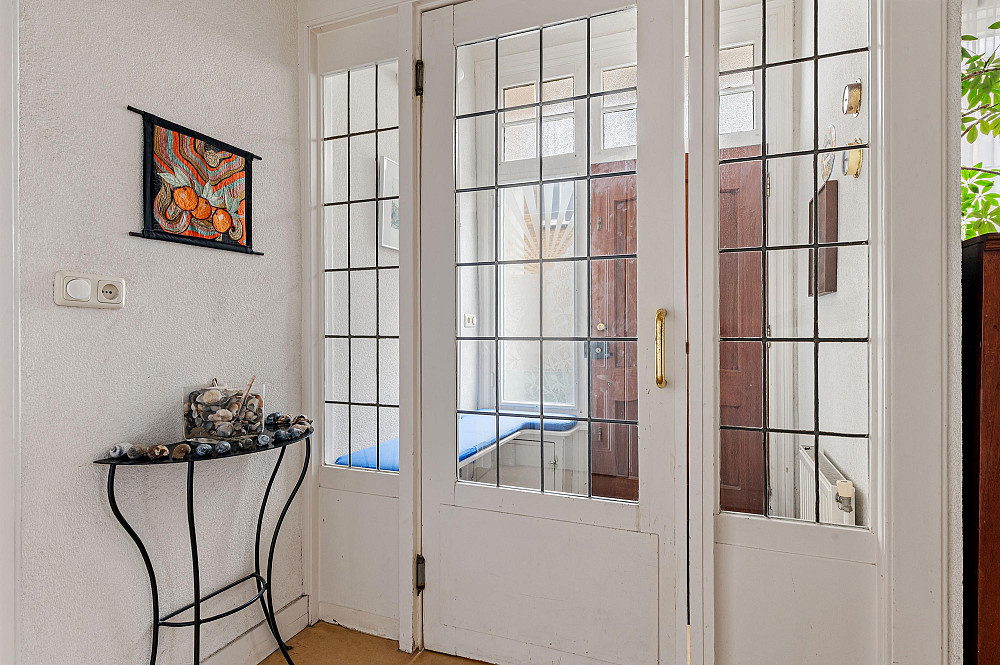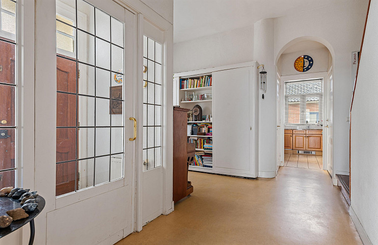 Via de zij-entree bereikt u de woning. Entree in vestibule/tochtportaal, welke toegang geeft tot de royale hal van ca. 12 m² met trapopgang, toiletruimte, toegang tot de keuken aan de achterzijde en toegang tot de woonkamer. Tevens bevindt zich in de hal een grote bergkast onder de trap en is er toegang tot de kelder van ca. 12 m2.