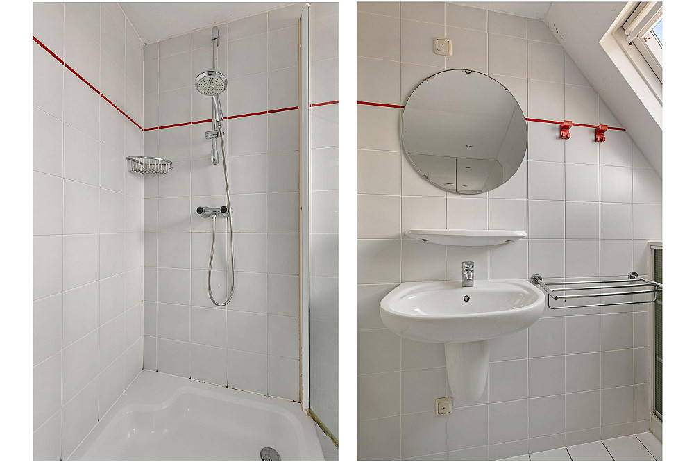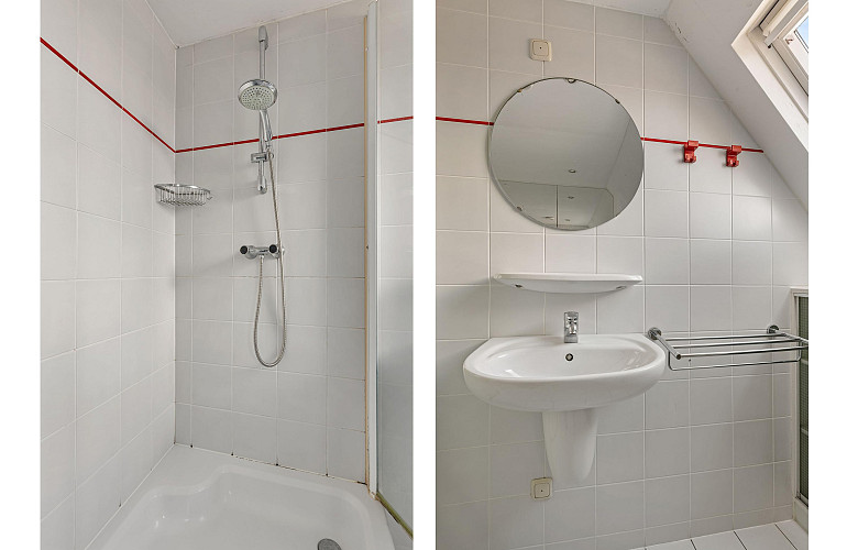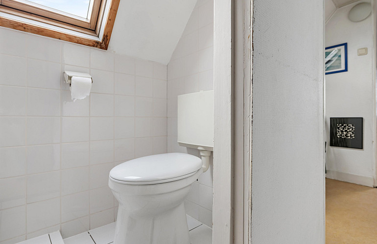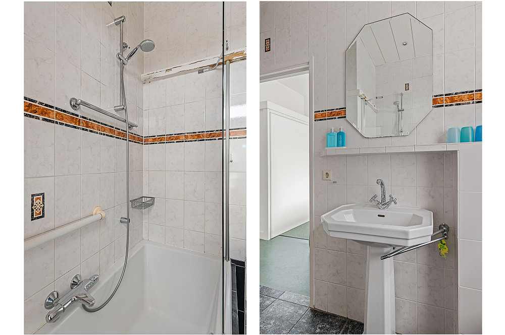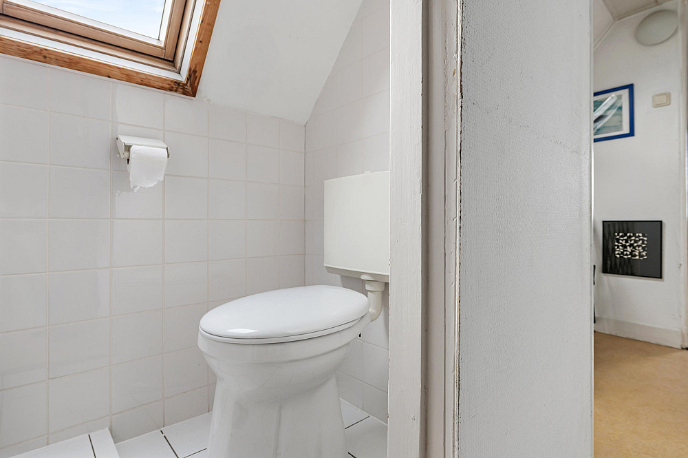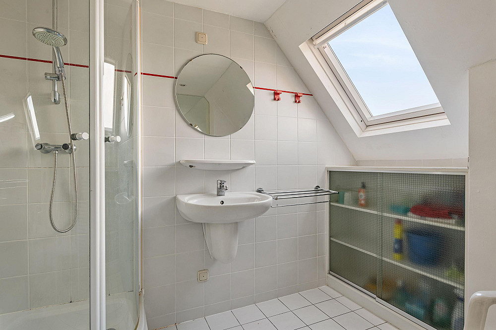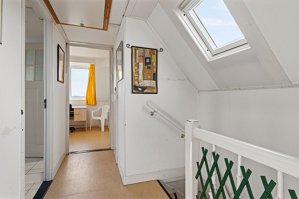 Overloop, twee grote slaapkamers, een tweede badkamer met douche en wastafel en een separate toiletruimte. In de slaapkamers zijn inbouwkasten aanwezig.