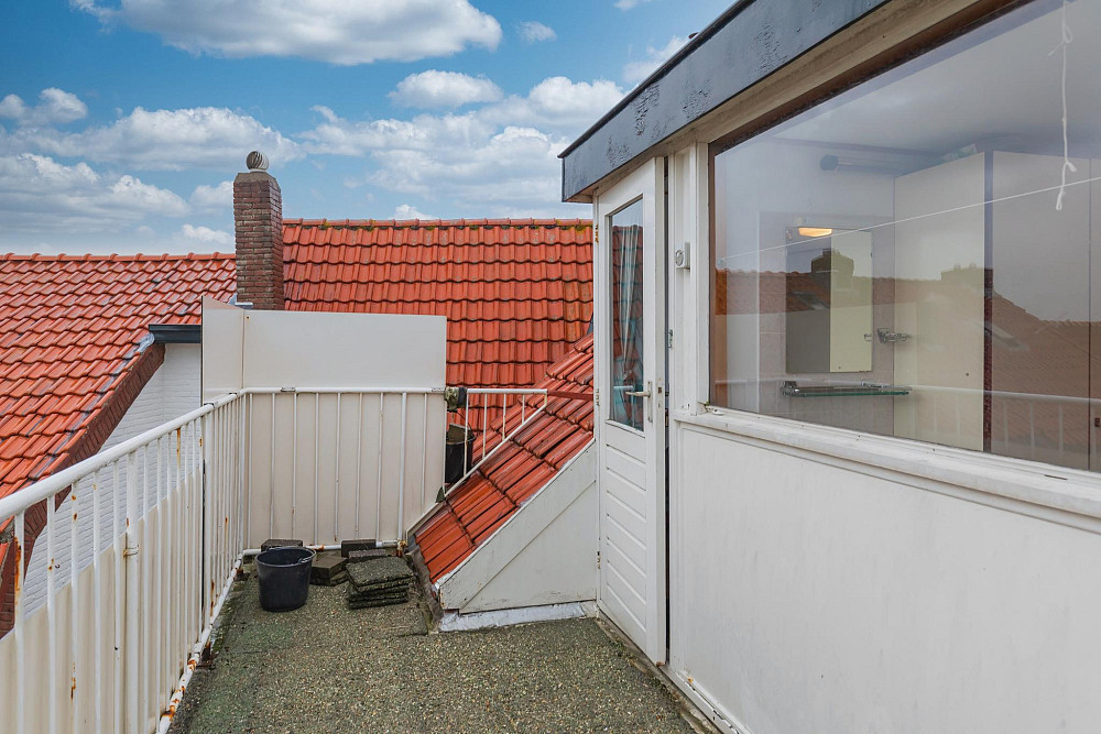 Tweede etage: Overloop met veel bergruimte, Cv-gasafdeling, twee ruime zolder/slaapkamers, beide voorzien van een dakkapel. Aan de achterzijde van de woning bevindt zich een ruim en zonnig dakterras met prachtig uitzicht over Noordwijk-Binnen.