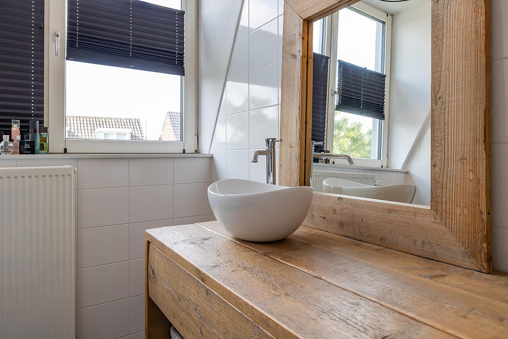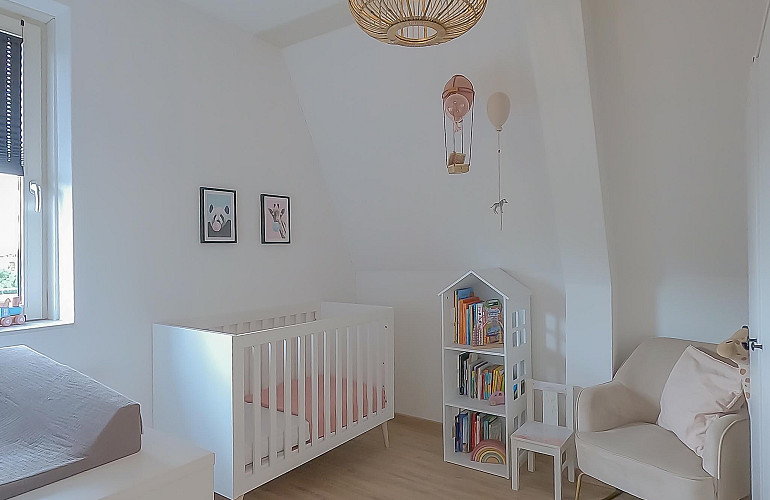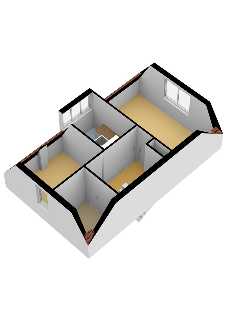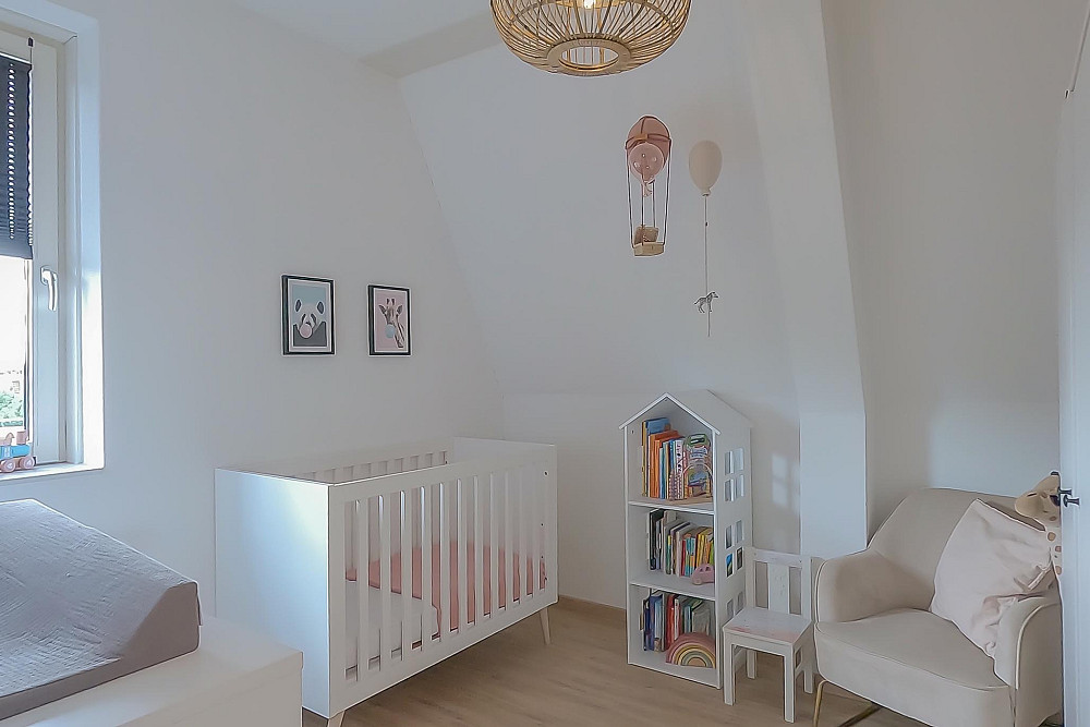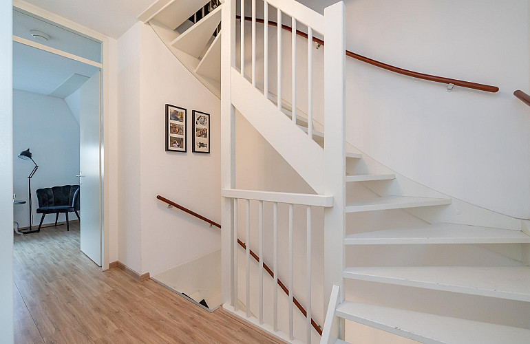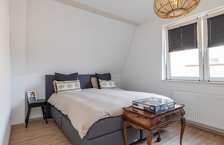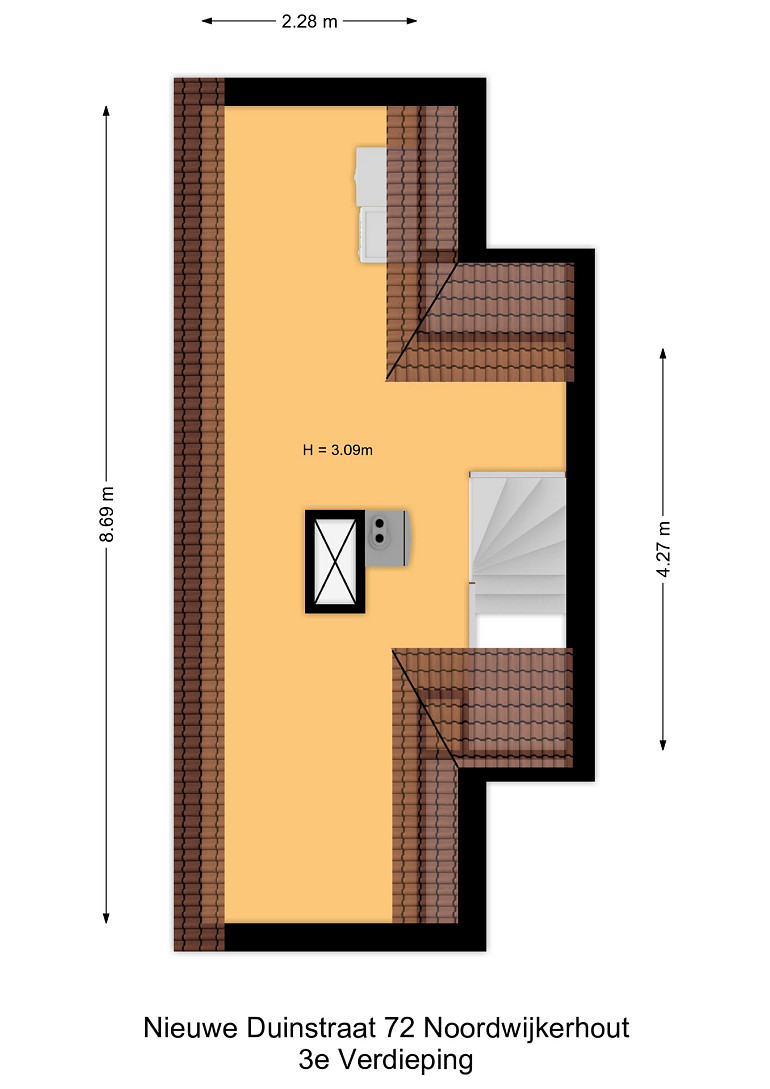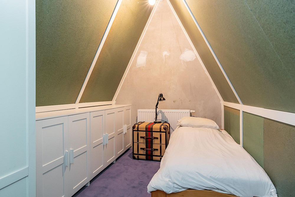 3e Verdieping: Middels een vaste trap bereikt u de ruime zolderkamer met veel bergruimte achter de knieschotten. Mogelijkheid voor een extra slaapkamer middels plaatsing dakra(a)m(en). U treft op deze verdieping ook de opstelling voor c.v.-combiketel, balans ventilatiesysteem met warmteterugwinning en de aansluitingen voor de wasmachine en droger.