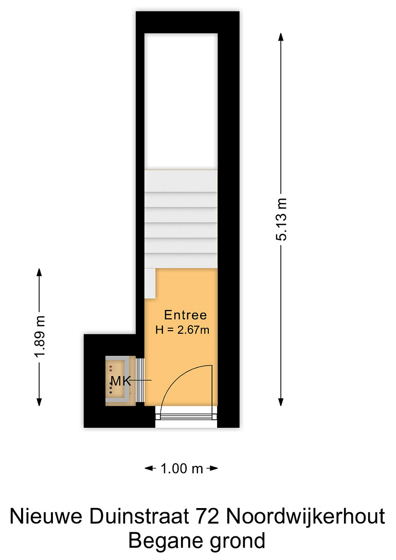 Indeling: Begane grond: Eigen entree, hal met de meterkast en trapopgang.