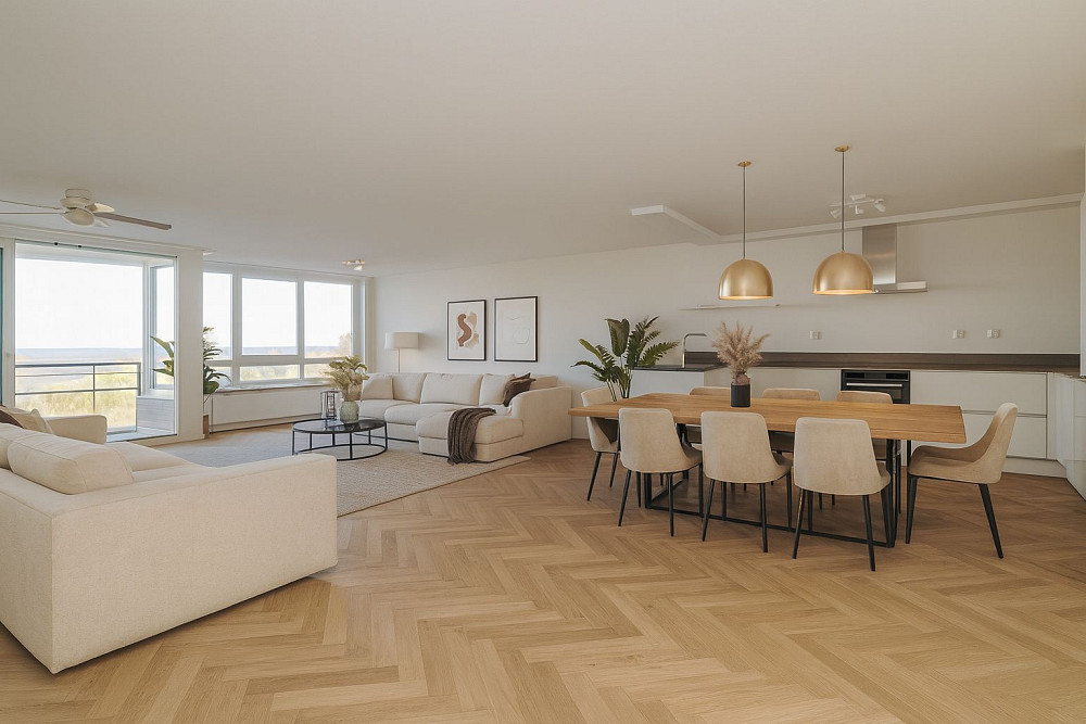 • Royaal appartement (ca. 122 m2) op de eerste verdieping van een fraai complex vlak aan het langgerekte strand van Noordwijk.