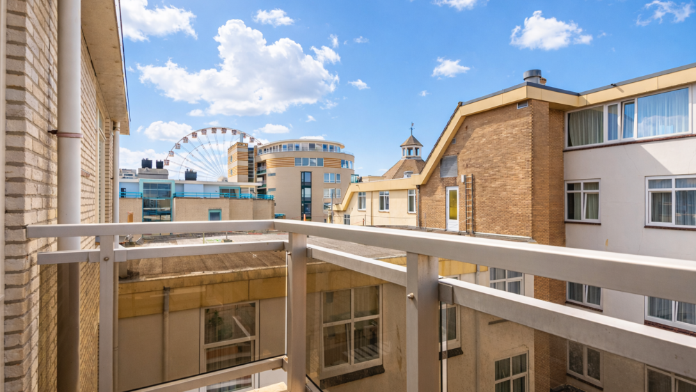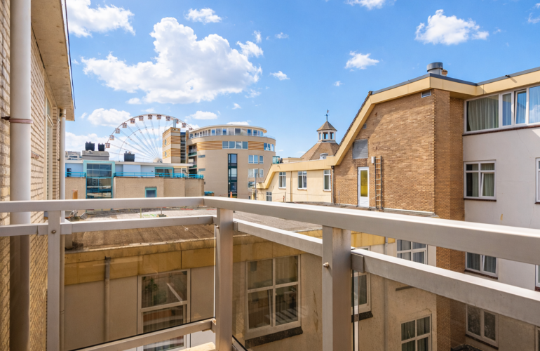Een hoogtepunt is het riante terras van circa 22 m² aan de voorzijde, gunstig gelegen op het zuidoosten. Dit zonnige terras grenst direct aan de woonkamer en biedt een uniek uitzicht over Noordwijk. Dankzij de royale afmetingen is er meer dan genoeg plaats voor een grote eettafel, een loungehoek en groene beplanting. Hier geniet u van de ochtendzon tot in de middag, de frisse zeelucht en het weidse uitzicht – een perfecte plek voor lange zomeravonden of om gasten te ontvangen. Daarnaast beschikt het appartement over een tweede, kleiner terras aan de achterzijde, ideaal gelegen voor de avondzon.