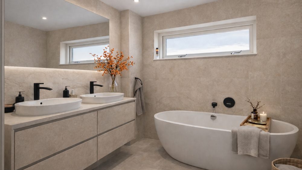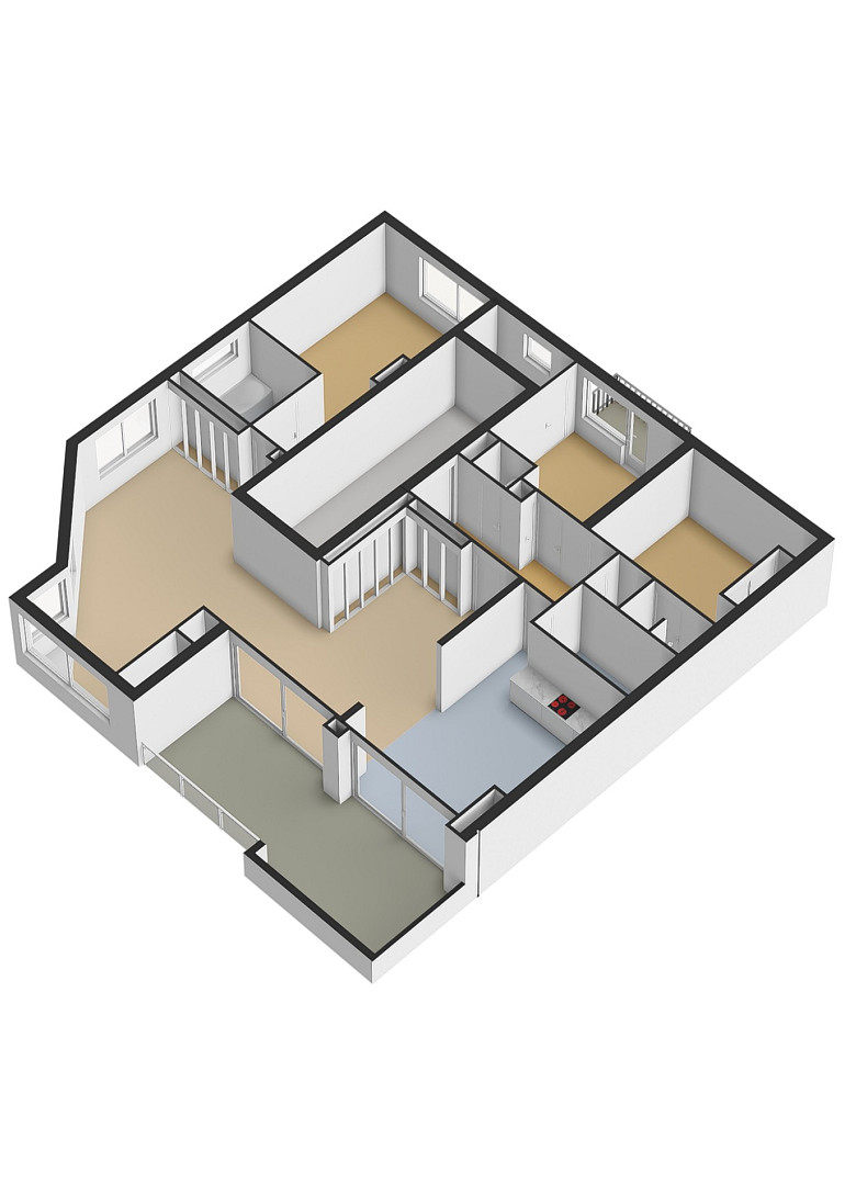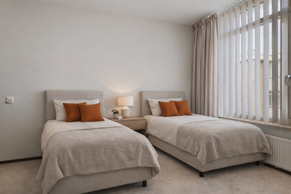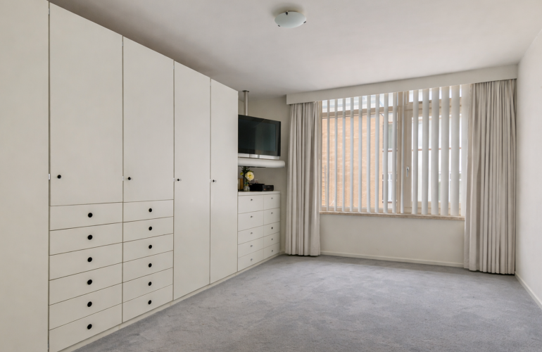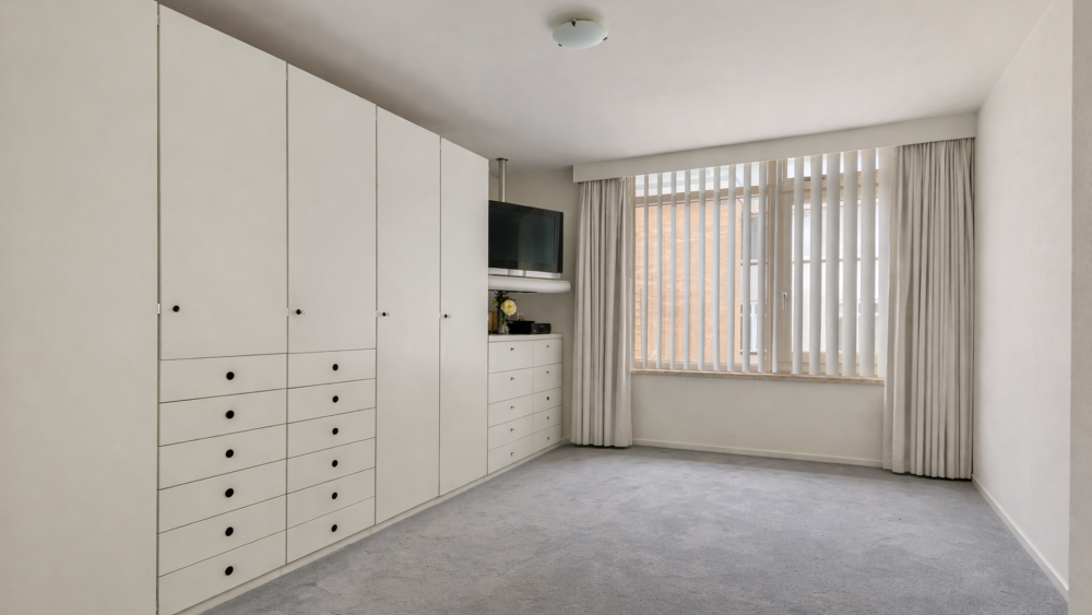 Het penthouse beschikt over drie volwaardige slaapkamers en in totaal drie badkamers. De master bedroom is voorzien van een eigen badkamer, de tweede badkamer en een separaat toilet zorgen voor extra comfort voor bewoners en gasten. De derde badkamer wordt momenteel gebruikt als bergruimte, maar kan eenvoudig weer in gebruik worden genomen als volwaardige badkamer.