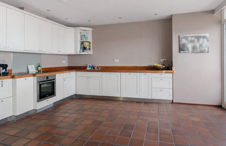 De lichte woonkamer met grote raampartijen en een sfeervolle gashaard, biedt een vrij uitzicht over Noordwijk. Vanuit een hoek van de kamer (momenteel ingericht als studeerhoek) geniet u zelfs van een fraai zeezicht. Aansluitend bevindt zich de eetkamer en de woon/eetkeuken in L-opstelling, uitgevoerd met uitgebreide inbouwapparatuur: vriezer, koelkast, vaatwasser, oven, inductiekookplaat, close-in boiler en afzuigkap. Een smaakvolle combinatie van vakmanschap en comfort.