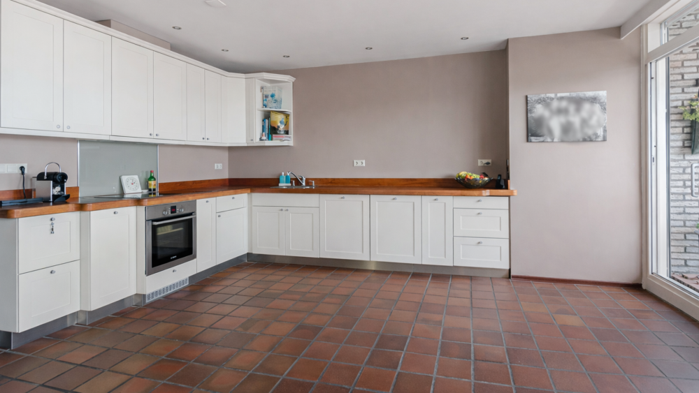 De lichte woonkamer met grote raampartijen en een sfeervolle gashaard, biedt een vrij uitzicht over Noordwijk. Vanuit een hoek van de kamer (momenteel ingericht als studeerhoek) geniet u zelfs van een fraai zeezicht. Aansluitend bevindt zich de eetkamer en de woon/eetkeuken in L-opstelling, uitgevoerd met uitgebreide inbouwapparatuur: vriezer, koelkast, vaatwasser, oven, inductiekookplaat, close-in boiler en afzuigkap. Een smaakvolle combinatie van vakmanschap en comfort.