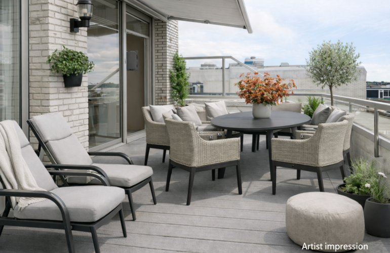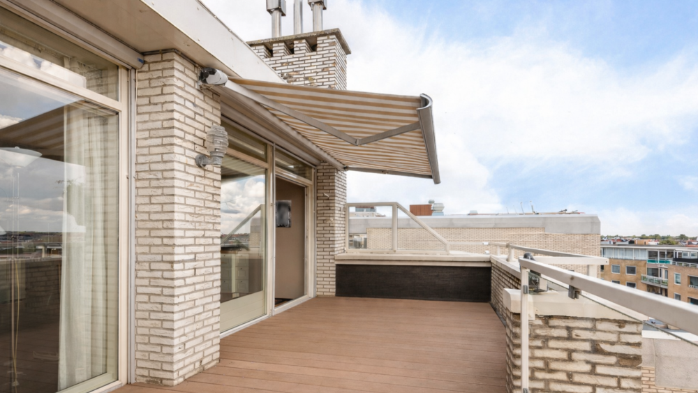 Een hoogtepunt is het riante terras van circa 22 m² aan de voorzijde, gunstig gelegen op het zuidoosten. Dit zonnige terras grenst direct aan de woonkamer en biedt een uniek uitzicht over Noordwijk. Dankzij de royale afmetingen is er meer dan genoeg plaats voor een grote eettafel, een loungehoek en groene beplanting. Hier geniet u van de ochtendzon tot in de middag, de frisse zeelucht en het weidse uitzicht – een perfecte plek voor lange zomeravonden of om gasten te ontvangen. Daarnaast beschikt het appartement over een tweede, kleiner terras aan de achterzijde, ideaal gelegen voor de avondzon.