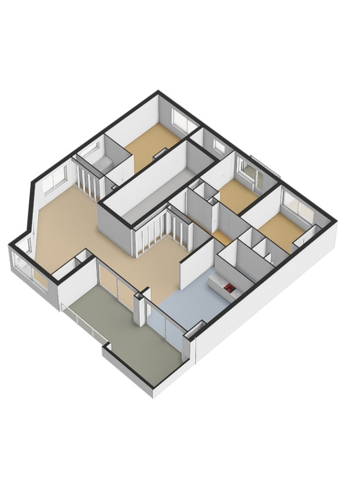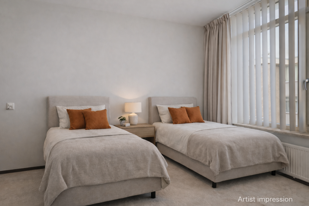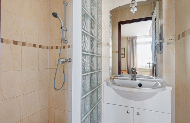 Het penthouse beschikt over drie volwaardige slaapkamers en in totaal drie badkamers. De master bedroom is voorzien van een eigen badkamer, de tweede badkamer en een separaat toilet zorgen voor extra comfort voor bewoners en gasten. De derde badkamer wordt momenteel gebruikt als bergruimte, maar kan eenvoudig weer in gebruik worden genomen als volwaardige badkamer.