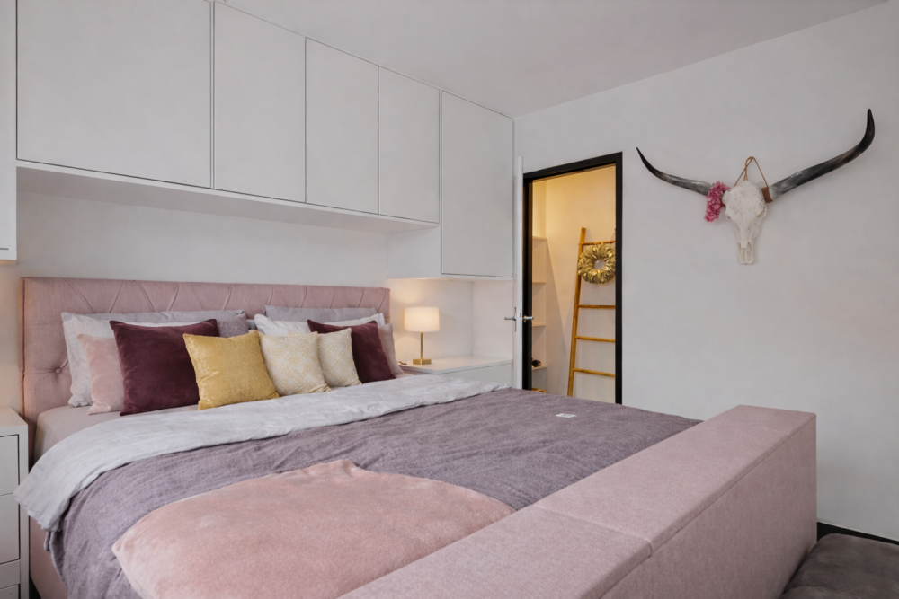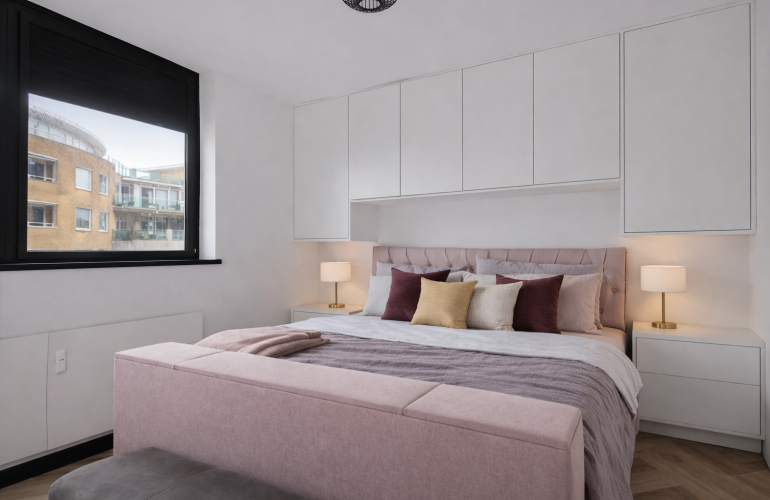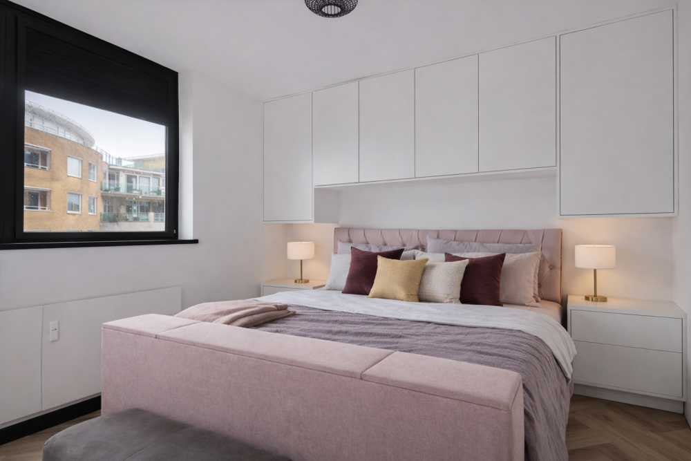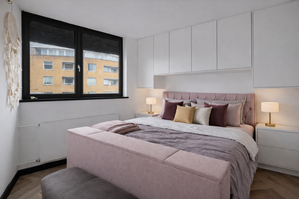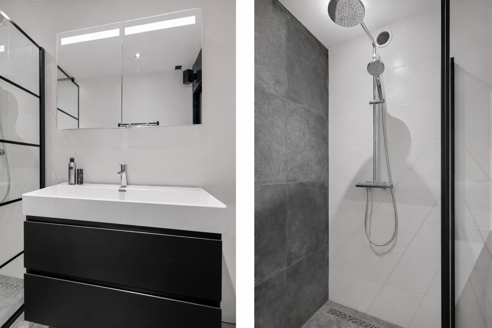 Het appartement beschikt over twee slaapkamers, waaronder een ruime hoofdslaapkamer met maatwerk inbouwkastenwand en separate inloopkast. De moderne badkamer is uitgevoerd met een inloopdouche met thermostaatkraan en een stijlvol wastafelmeubel. Het toilet is separaat en eveneens vernieuwd. Daarnaast is er een inpandige berging met wasruimte, voorzien van aansluitingen voor wasmachine en droger. Door het gehele appartement zijn nieuwe binnendeuren en binnendeurkozijnen geplaatst. Ook de elektrische installatie is gemoderniseerd en voorzien van een nieuwe groepenkast.