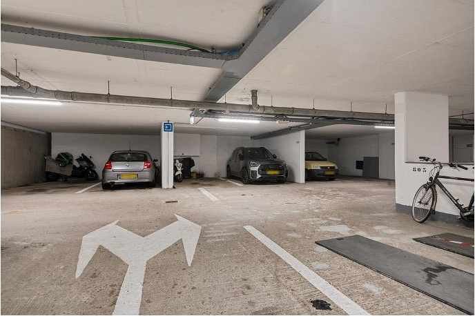 Bij het appartement behoort tevens een eigen (separate) berging. Daarnaast is er een parkeerplaats in de parkeerkelder beschikbaar, ter overname voor € 40.000,--