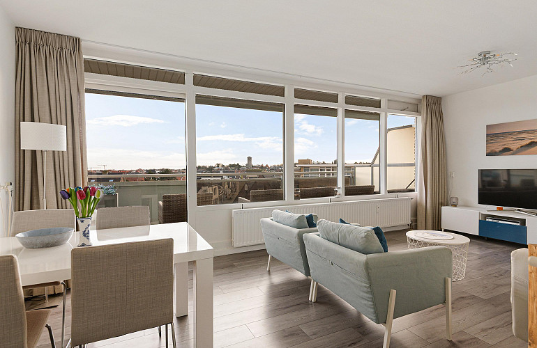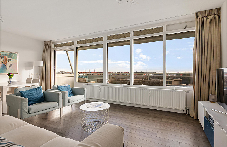 Een verzorgd en instapklaar appartement met vrij uitzicht over het dorp, een ruim zonnig terras en uitstekende voorzieningen, gelegen op een toplocatie aan zee – ideaal voor comfortabel wonen of als tweede verblijf aan de kust.
