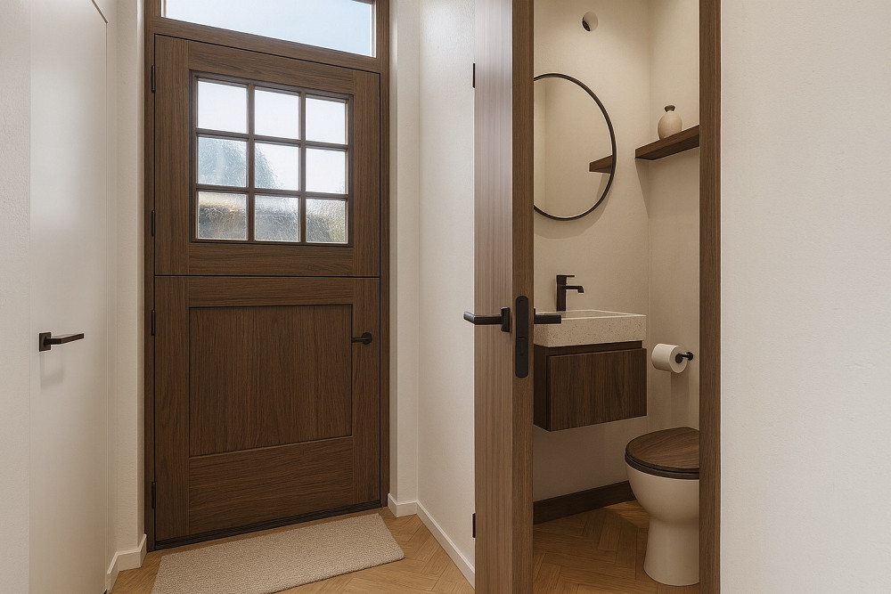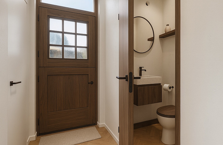Entree: Zij-ingang met hal, meterkast en toilet.