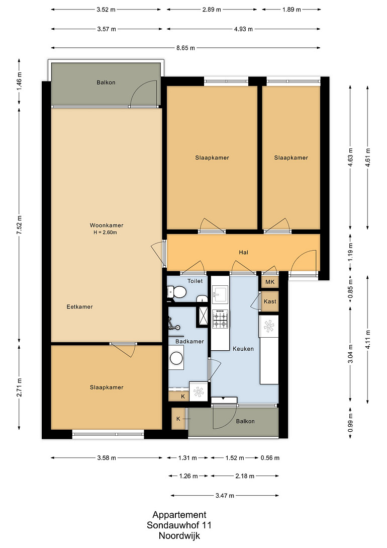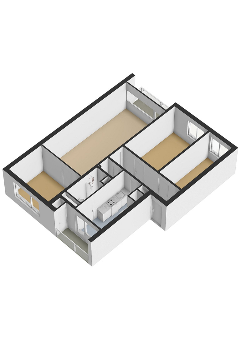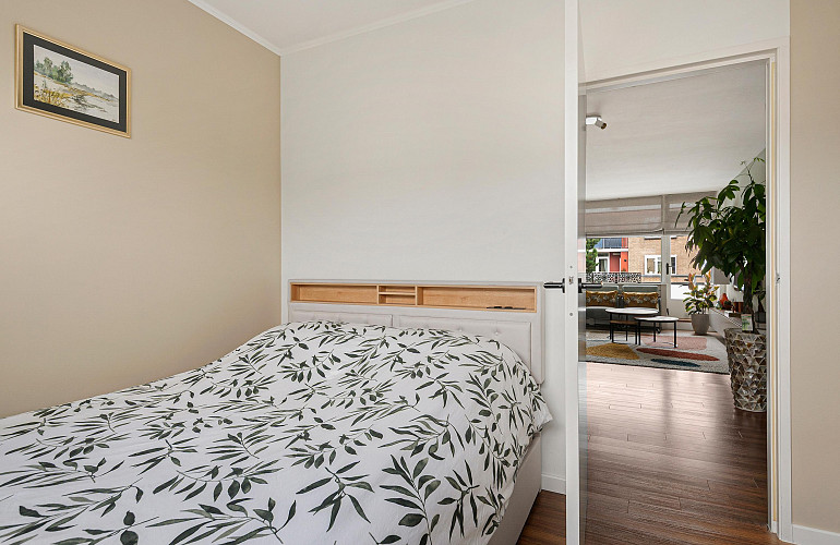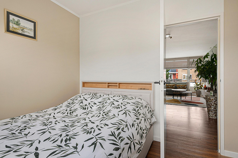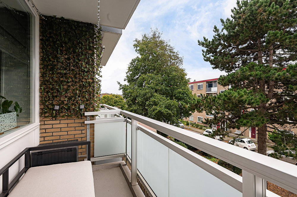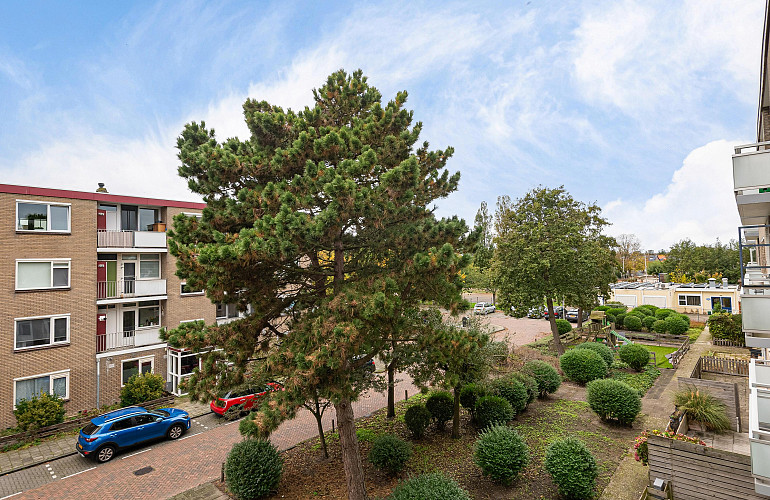De woning beschikt over drie slaapkamers, een aparte keuken, en twee balkons — waarvan één op het zuidwesten, waar u vrijwel de hele dag van de zon kunt genieten. Op de begane grond bevindt zich een ruime privéberging van ca. 6 m2.