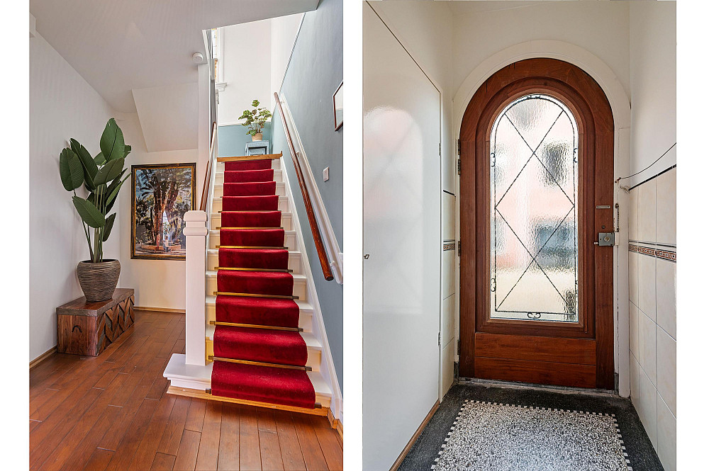 Representatieve entree met vestibule, garderobe en meterkast. Vanuit de entree bereikt u de lichte hal met een fraaie originele bordestrap en glas-in-loodraam.