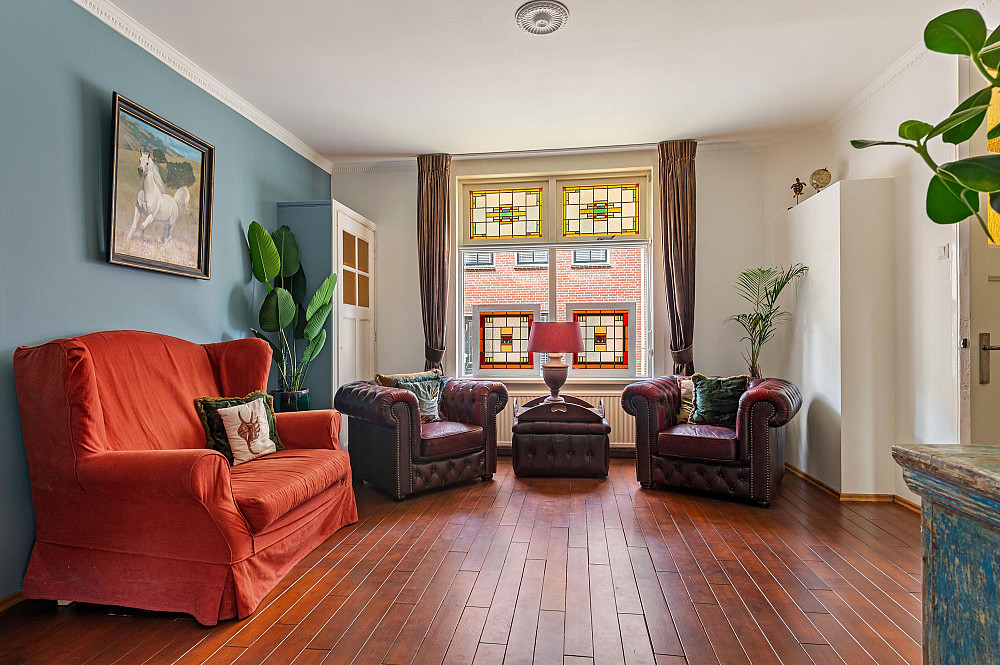 - Royale zitkamer met aangrenzende (kasten)ruimte, samen ca. 30 m².