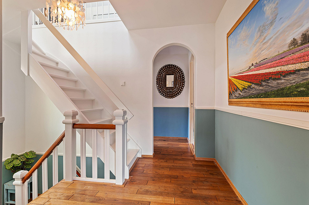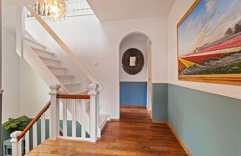 Via het verzorgde trappenhuis bereikt u de centrale overloop, die toegang geeft tot alle vertrekken op deze verdieping.