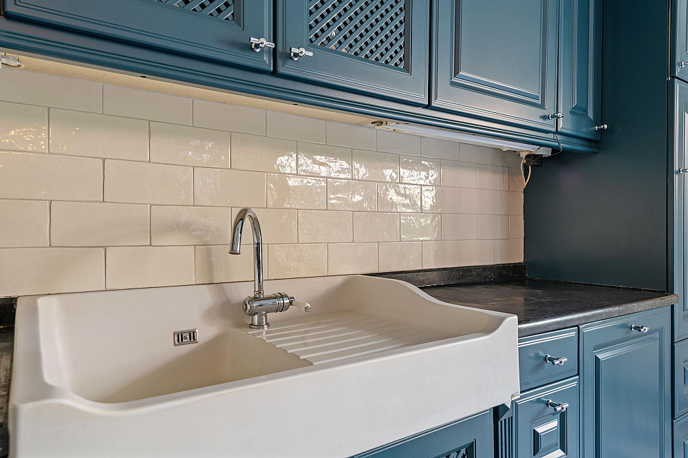 - Open keuken in L-opstelling met granieten werkblad.