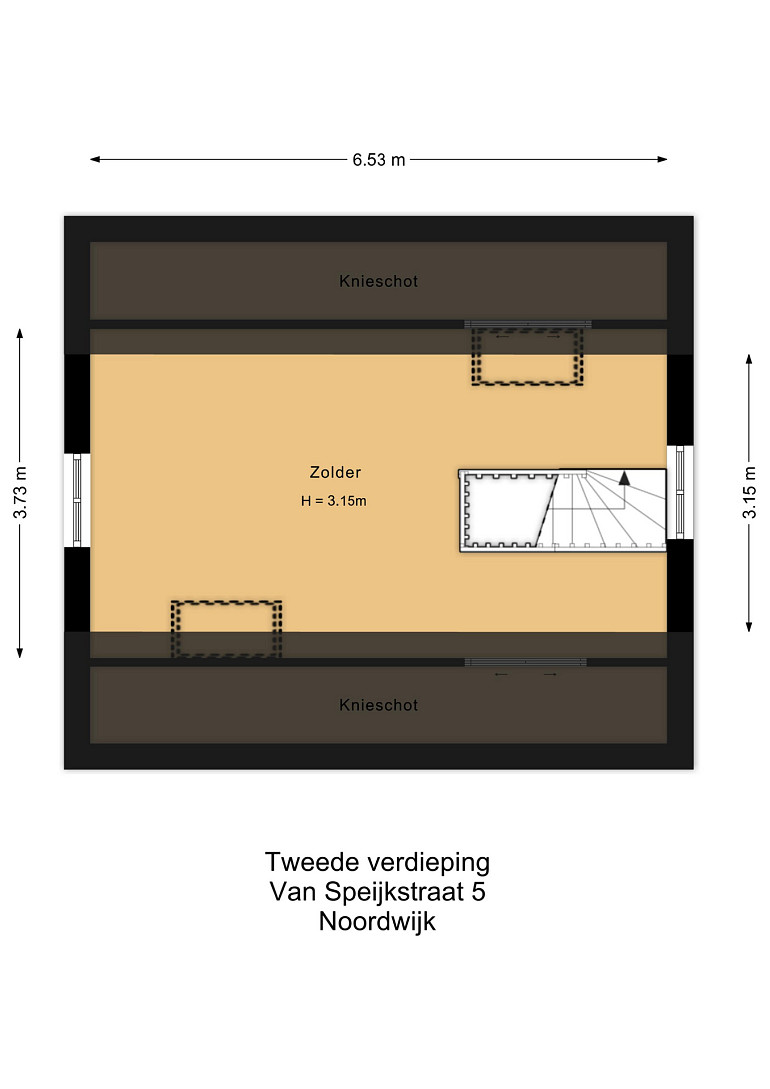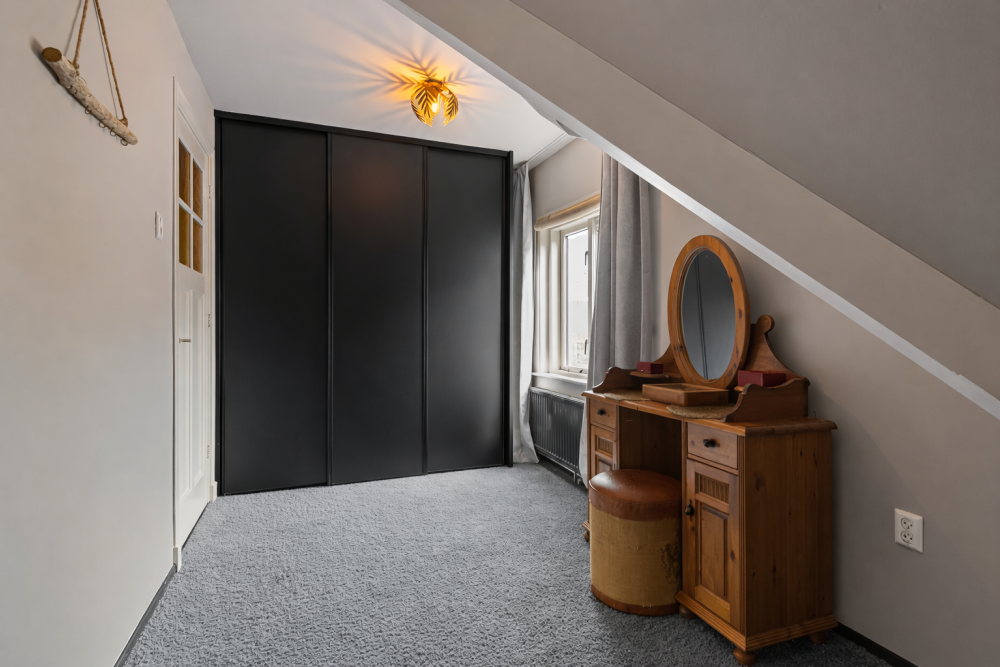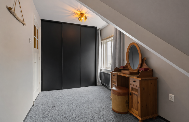Via een vaste trap bereikt u een ruime zolderkamer van circa 23 m² met Velux dakramen, bergruimte achter de knieschotten en een fraai uitzicht over Noordwijk aan Zee. Deze ruimte is ideaal als extra slaapkamer, kantoor of studio.