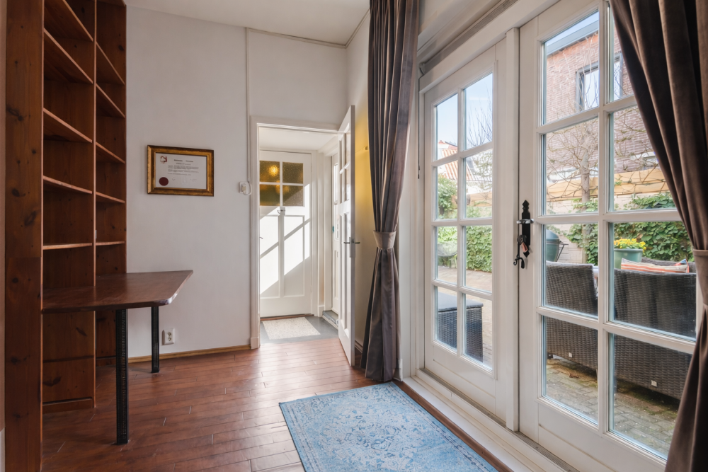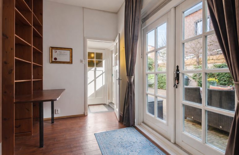 - Dubbele openslaande deuren vanuit eetkamer naar de tuin.