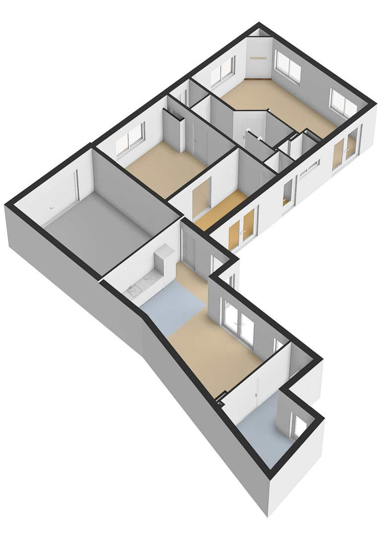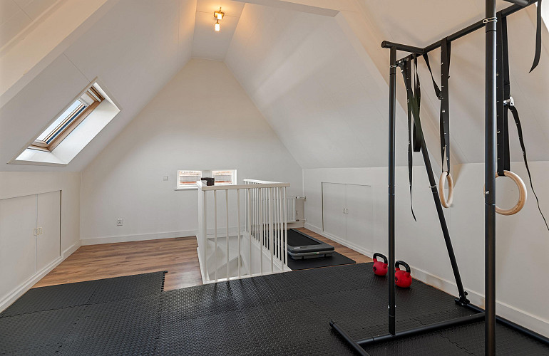 - Eerste verdieping met vier (slaap)kamers (waarvan één in gebruik als kleedkamer).
