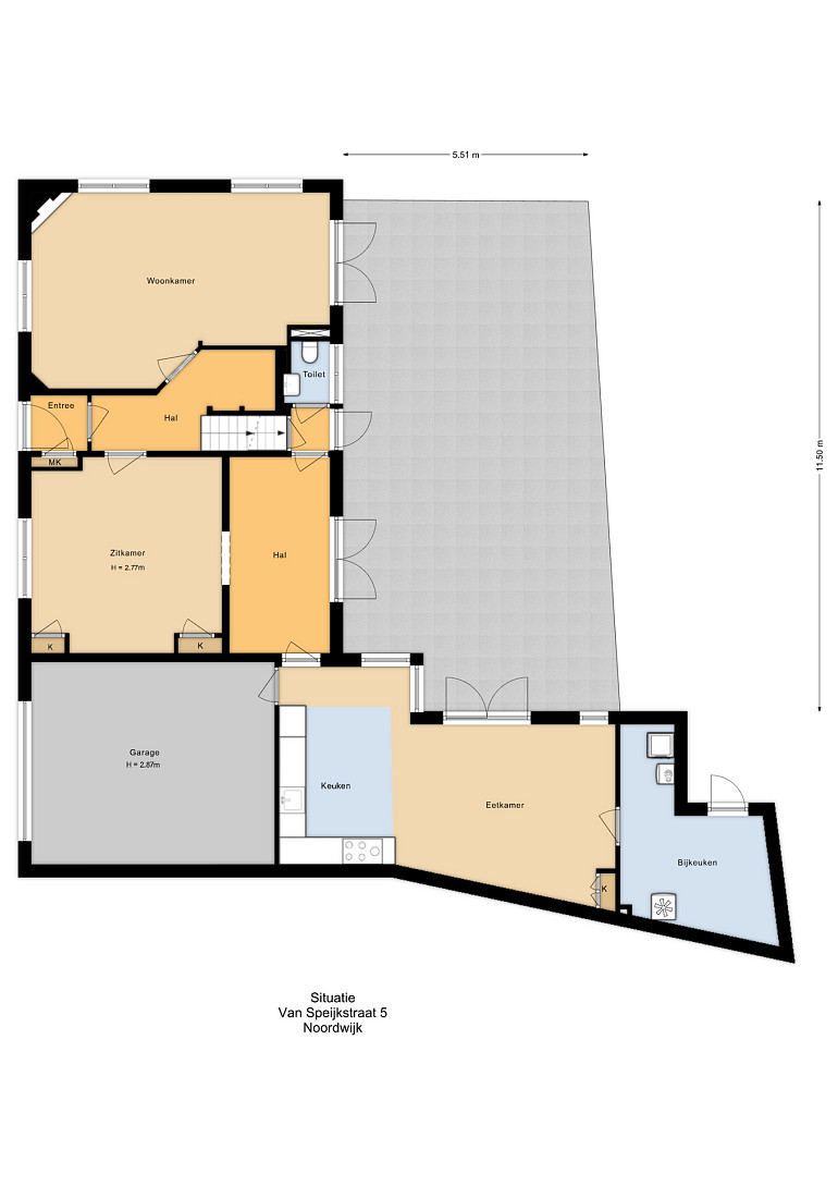 - Ruime bijkeuken met wasmachine-/drogeraansluiting en achteringang.
