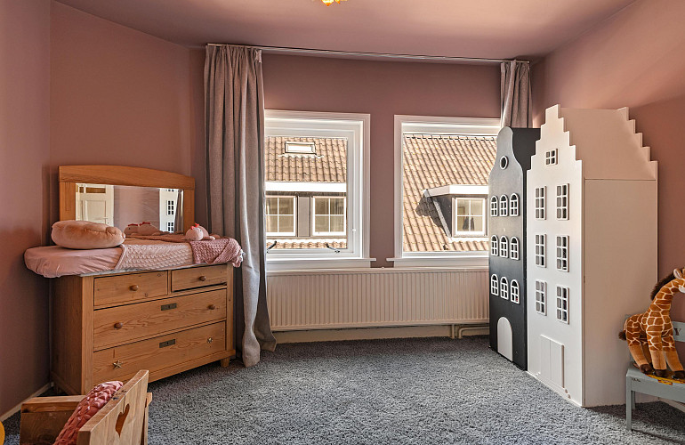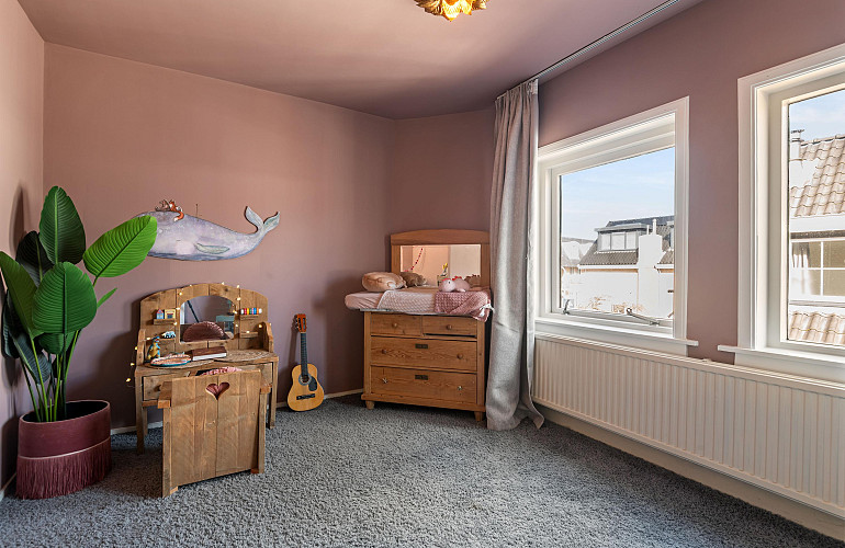 Aan de voorzijde bevindt zich een royale slaapkamer, ontstaan uit het samenvoegen van twee voormalige kamers. Hierdoor is een bijzonder ruime en lichte kamer gecreëerd. Daarnaast is er nog een tweede ruime slaapkamer met inbouwkast aan de voorzijde gelegen.