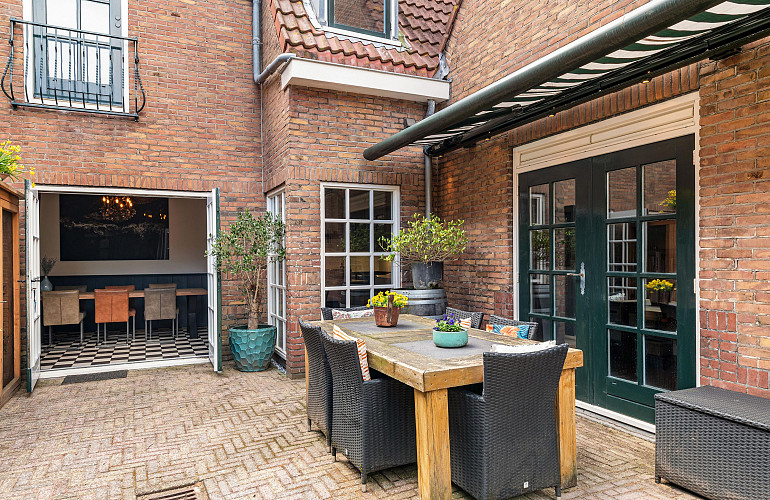- Twee sfeervolle woonkamers, beide met openslaande deuren naar de patio-tuin.