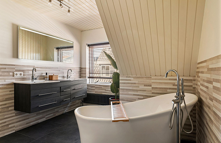 - Zeer royale hoofdslaapkamer onder de kap (ca. 50 m² vloeroppervlakte).