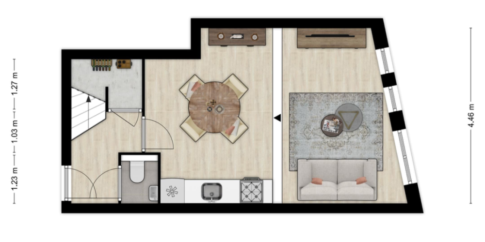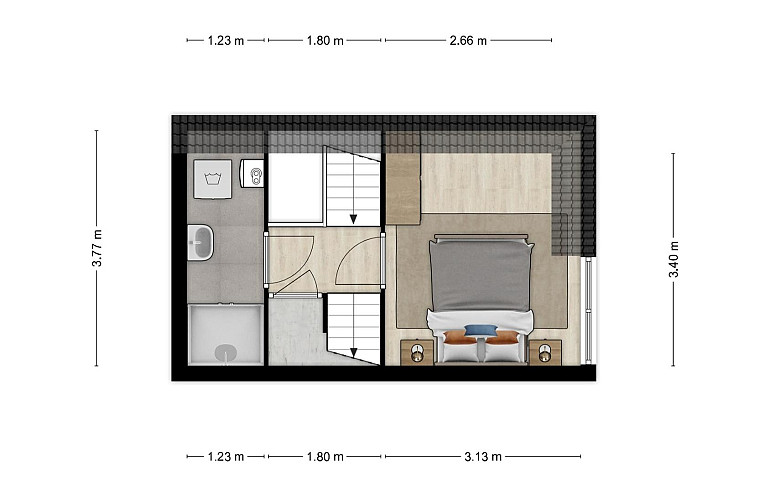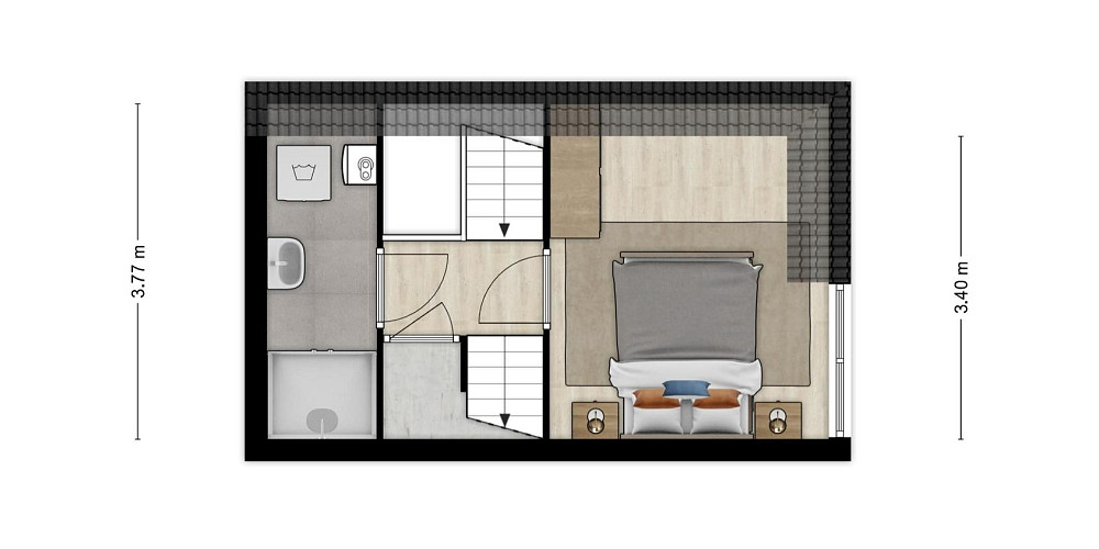 Compact maar efficiënt ingedeeld, met woonkamer en keuken beneden en slaapkamer en badkamer boven. Perfect voor starters of singles. Optioneel dakterras. Inclusief privéberging op de begane grond en eigen parkeerplaats. Alle woningen hebben op de verdieping nog een berging met C.V.-ketel.