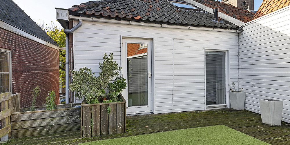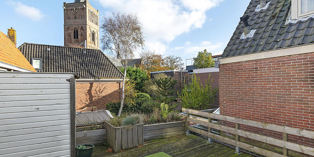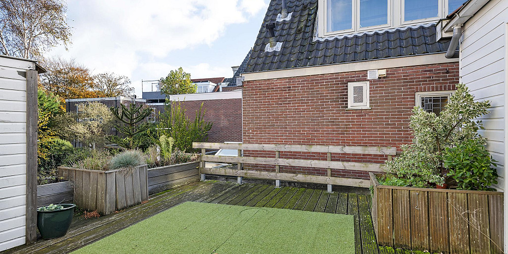 Dakterras: Aan de achterzijde bevindt zich een ruim en zonnig dakterras van ca. 27 m²; een ideale plek voor ontspanning en gezellige zomeravonden. Op dit dakterras is een kleine houten berging aanwezig voor het plaatsen van tuinmeubilair.