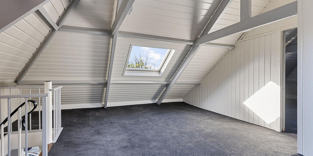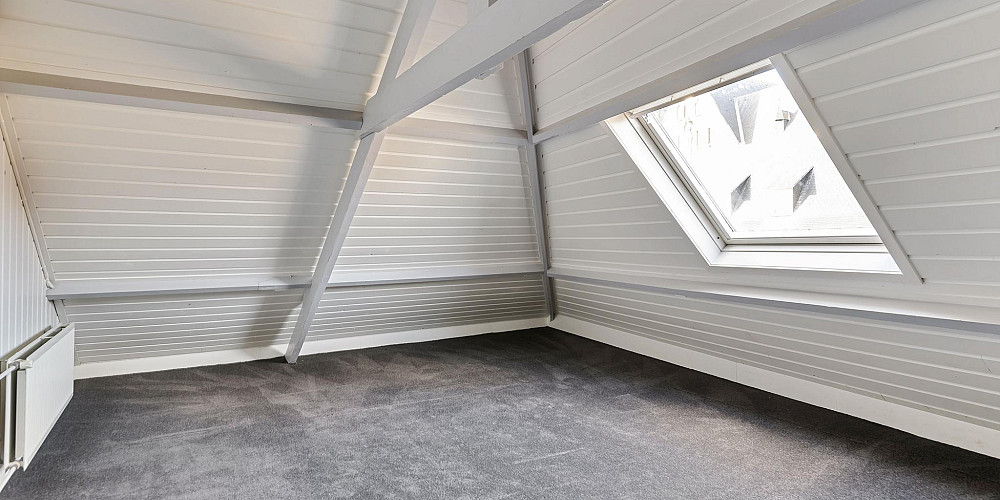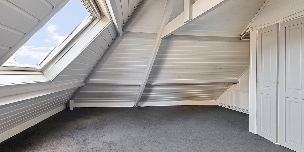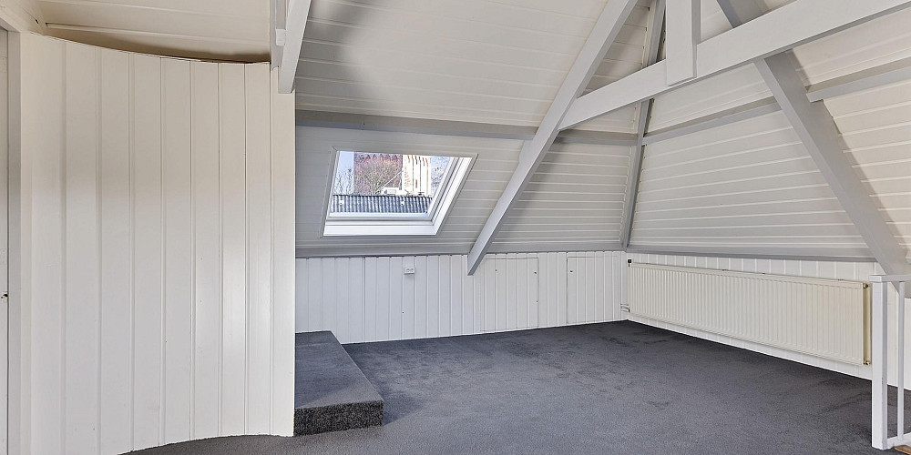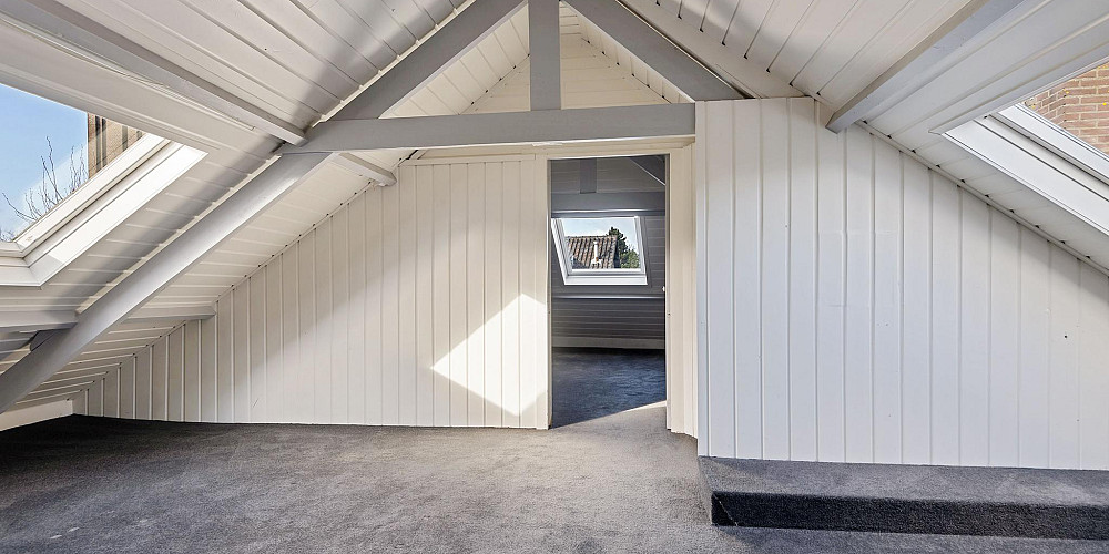Tweede verdieping: Een royale overloop en een ruime tweede slaapkamer met dakramen die zorgen voor extra licht. Op deze verdieping is er tevens nog de mogelijkheid voor het plaatsen van dakkapellen voor extra ruimte of creëren van extra slaapkamers.