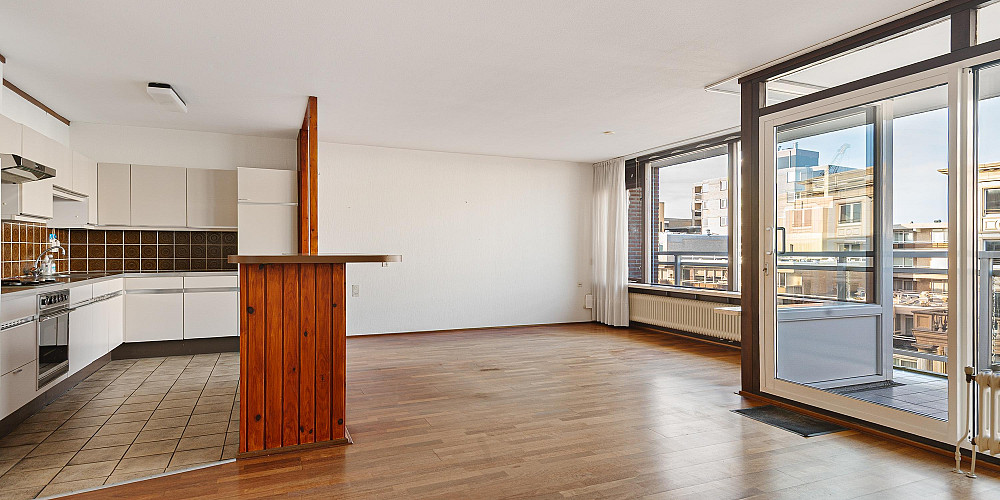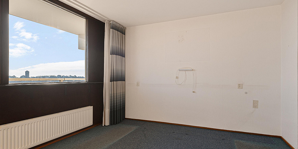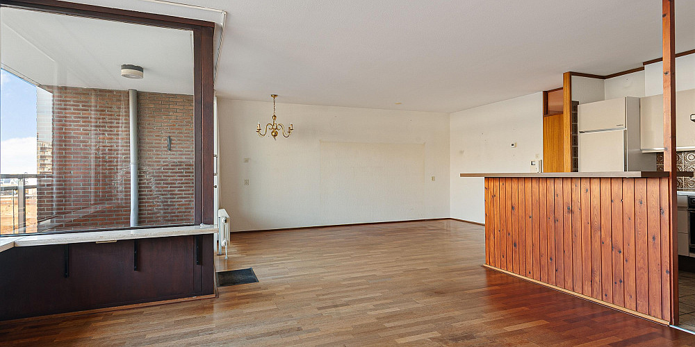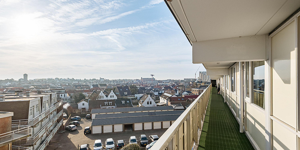 Entree, ruime hal met inloop bergkast annex garderobe, meterkast en toiletruimte met fontein. De lichte woonkamer vormt het hart van het appartement en biedt toegang tot het inpandige overdekte balkon: een fijne plek om buiten te zitten en te genieten van de zeelucht. Aansluitend bevindt zich de open keuken in originele uitvoering. Verder zijn er twee goed bemeten slaapkamers en twee badkamers: één met ligbad, toilet en wastafel en één met douche, wastafel en aansluitingen voor wasapparatuur.