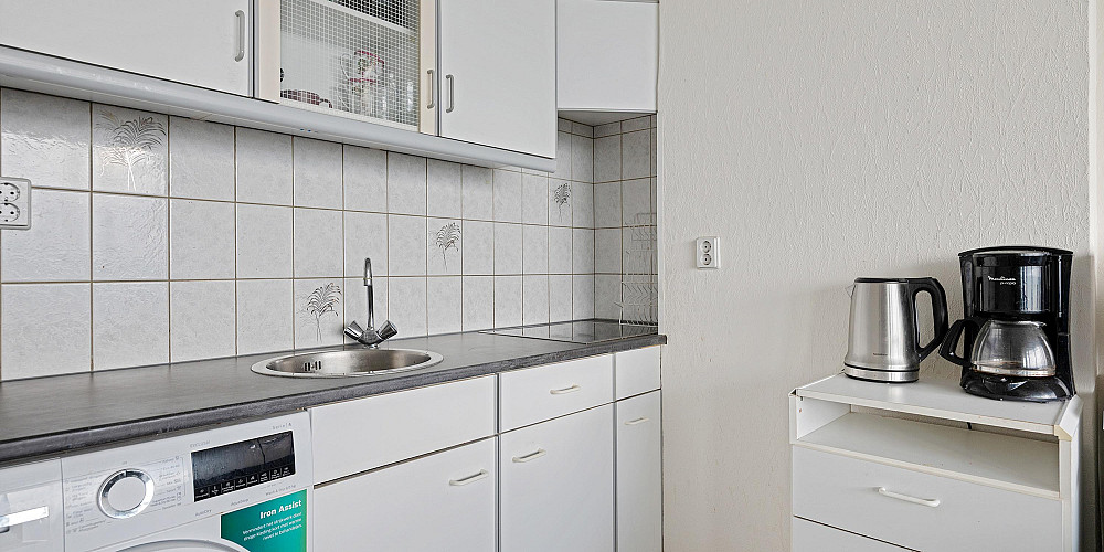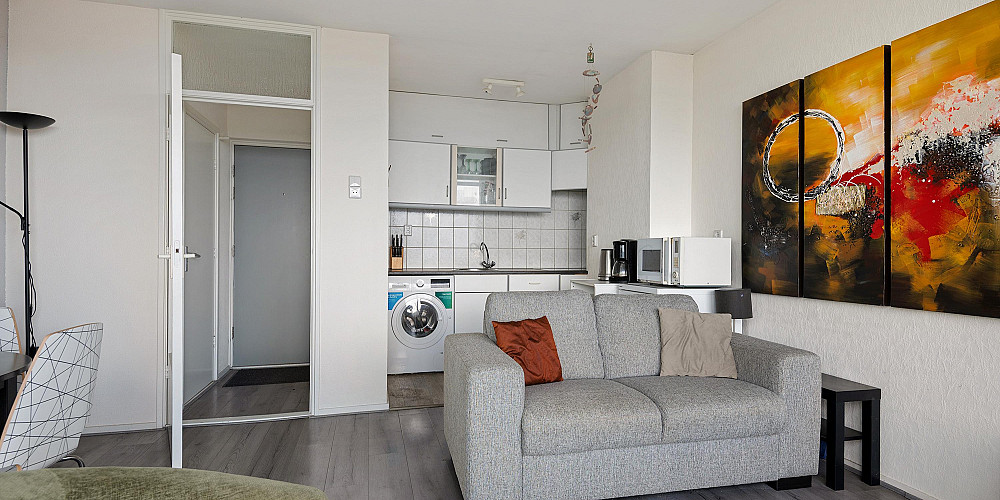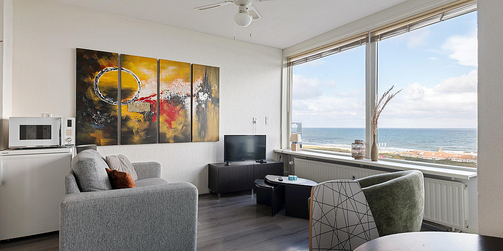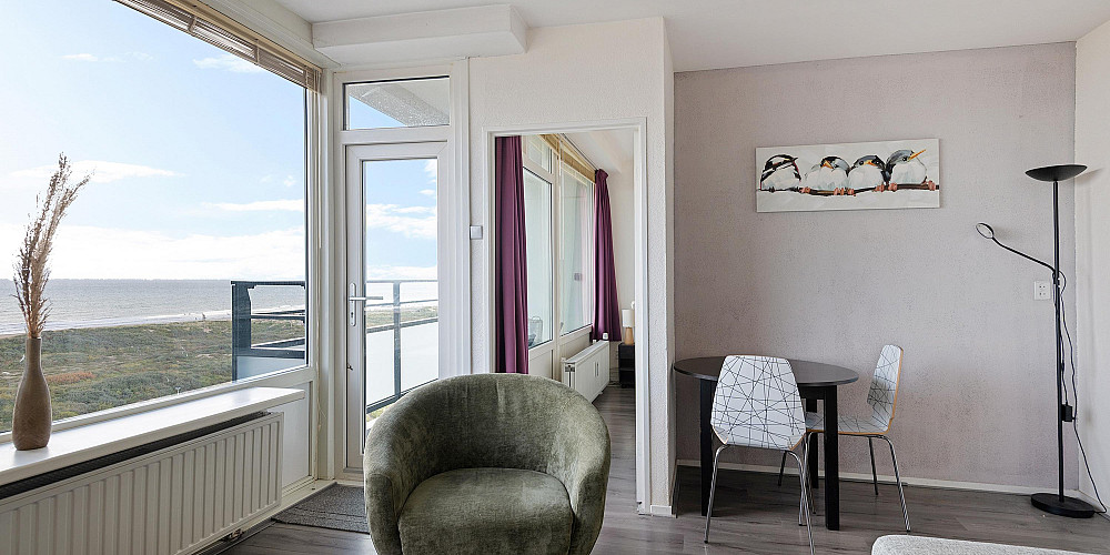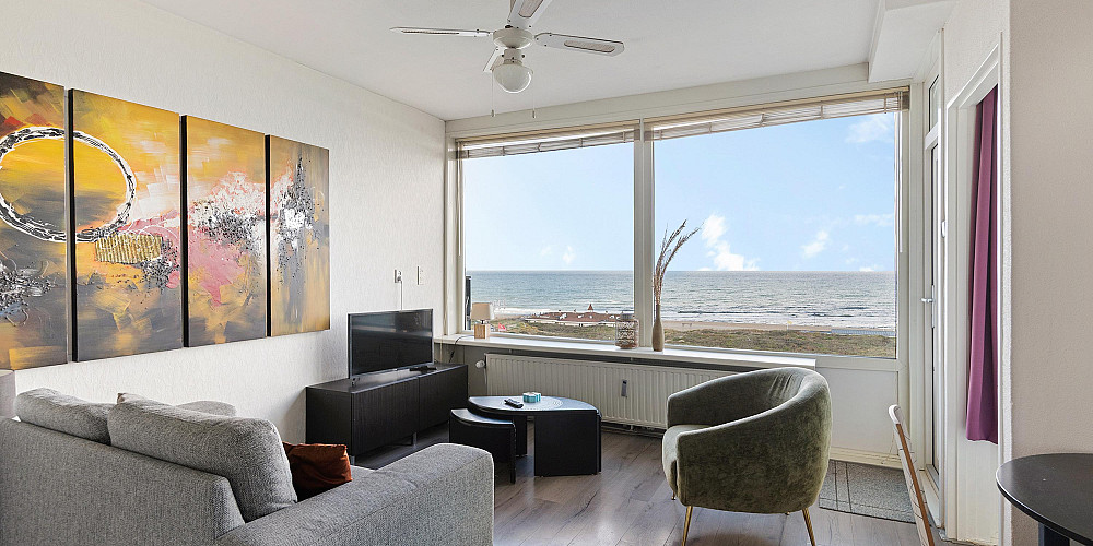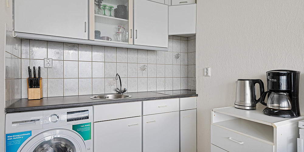Wanneer u de woonkamer betreedt, geeft de grote raampartij u direct een prachtig uitzicht over het strand en de zee. In de woonkamer vindt u een licht uitgevoerde open keuken. De open keuken is voorzien van een inductiekookplaat, was/droogcombinatie en voldoende opbergruimte.
