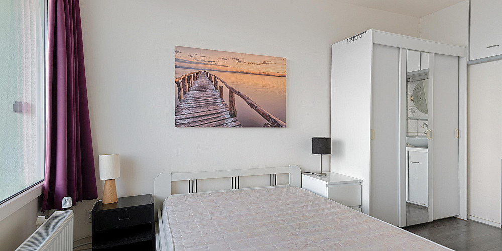 Aansluitend aan de woonkamer vindt u het balkon, waar u kunt genieten van de middagzon en zonsondergang; het balkon is gelegen op het westen. Vanuit de woonkamer is de slaapkamer bereikbaar. Vanuit het slaapgedeelte bereikt u, de doucheruimte met toilet en wastafel.