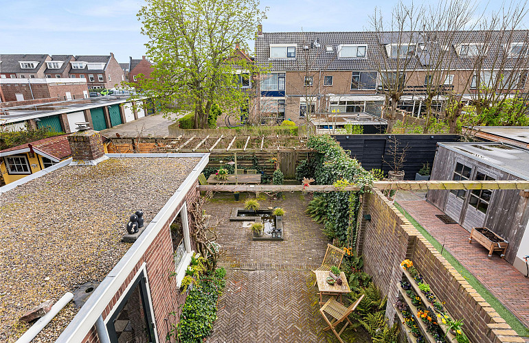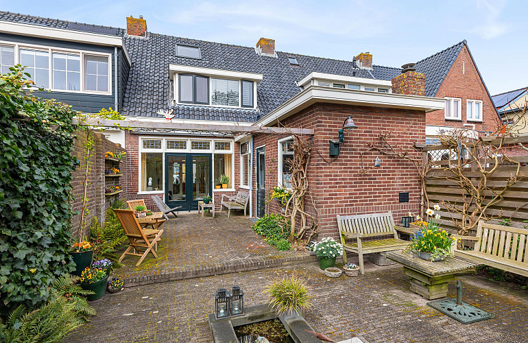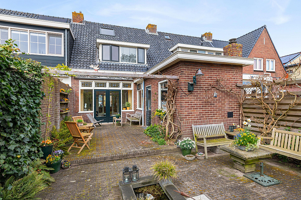 Aan een rustige, groene straat in een beschutte en geliefde woonwijk in Noordwijk ligt deze charmante tussenwoning (ca. 1935) met circa 99 m² woonoppervlakte en ca. 160 m² eigen grond. De ligging is ideaal: rustig en kindvriendelijk, maar tegelijkertijd op korte afstand van het centrum van Noordwijk-Binnen met winkels, scholen en sportvoorzieningen. Het strand, de duinen en Noordwijk aan Zee bevinden zich op circa 10 minuten fietsafstand. Ook de bereikbaarheid richting de N206 en A44 is uitstekend. De woning beschikt over diverse authentieke jaren ’30 details zoals glas-in-loodramen en -deuren, een erker, hoge plafonds, paneeldeuren en een fraaie visgraat parketvloer. Dit geeft de woning een warme en karaktervolle uitstraling. De ca. 12 meter diepe achtertuin op het zuidoosten vormt een absoluut pluspunt: een zonnige en groene buitenruimte met veel privacy en meerdere zitplekken. Hier geniet u vrijwel de gehele dag van de zon. De tuin is voorzien van een vrijstaande stenen berging en een praktische achterom.