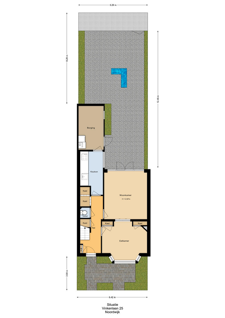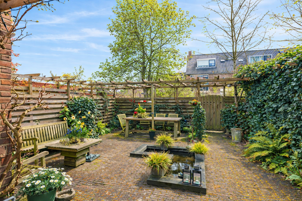 - Diepe achtertuin op het zuidoosten met berging en achterom;