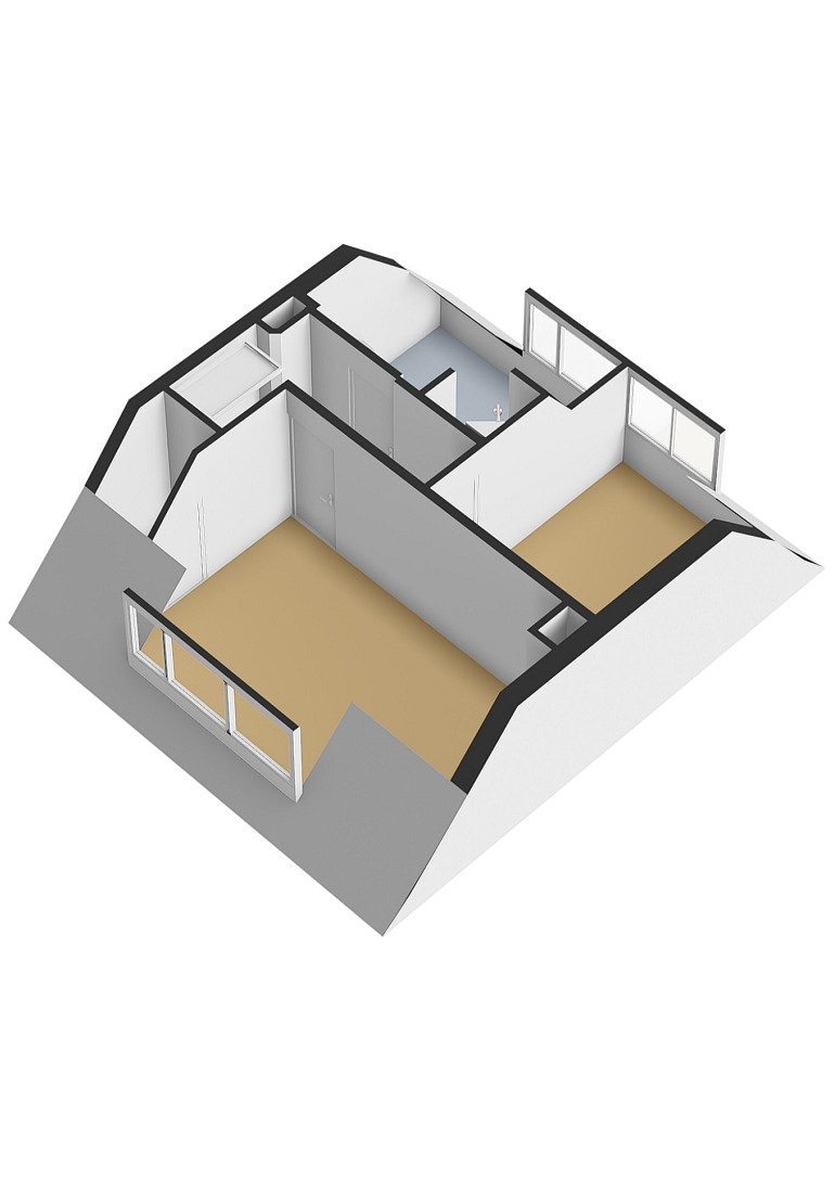 Momenteel is deze verdieping niet bereikbaar via een vaste trap; met het plaatsen hiervan kan de verdieping op relatief eenvoudige wijze als volwaardige woonlaag worden benut.