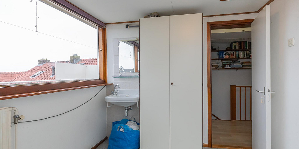Tweede etage: Overloop met veel bergruimte, Cv-gasafdeling, twee ruime zolder/slaapkamers, beide voorzien van een dakkapel. Aan de achterzijde van de woning bevindt zich een ruim en zonnig dakterras met prachtig uitzicht over Noordwijk-Binnen.